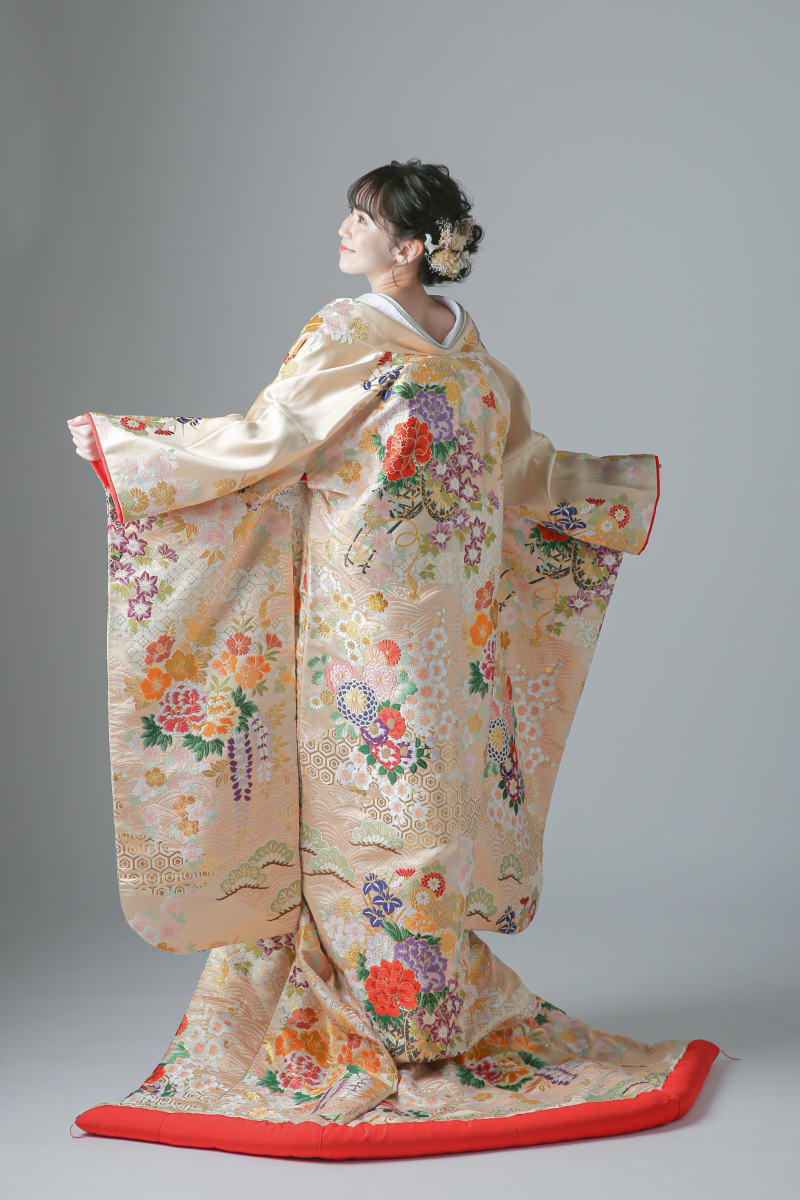 こちらは、「春花錦に波」というお衣装。優しいお色で優美で豪華、間違いなく可愛くなるお着物ですね✨