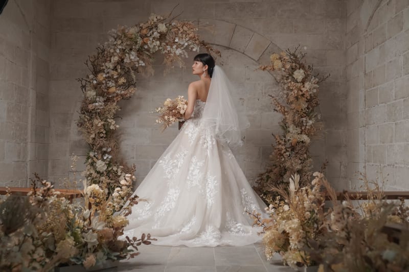 お気に入りのウエディングドレスでバックショットも映えます♪