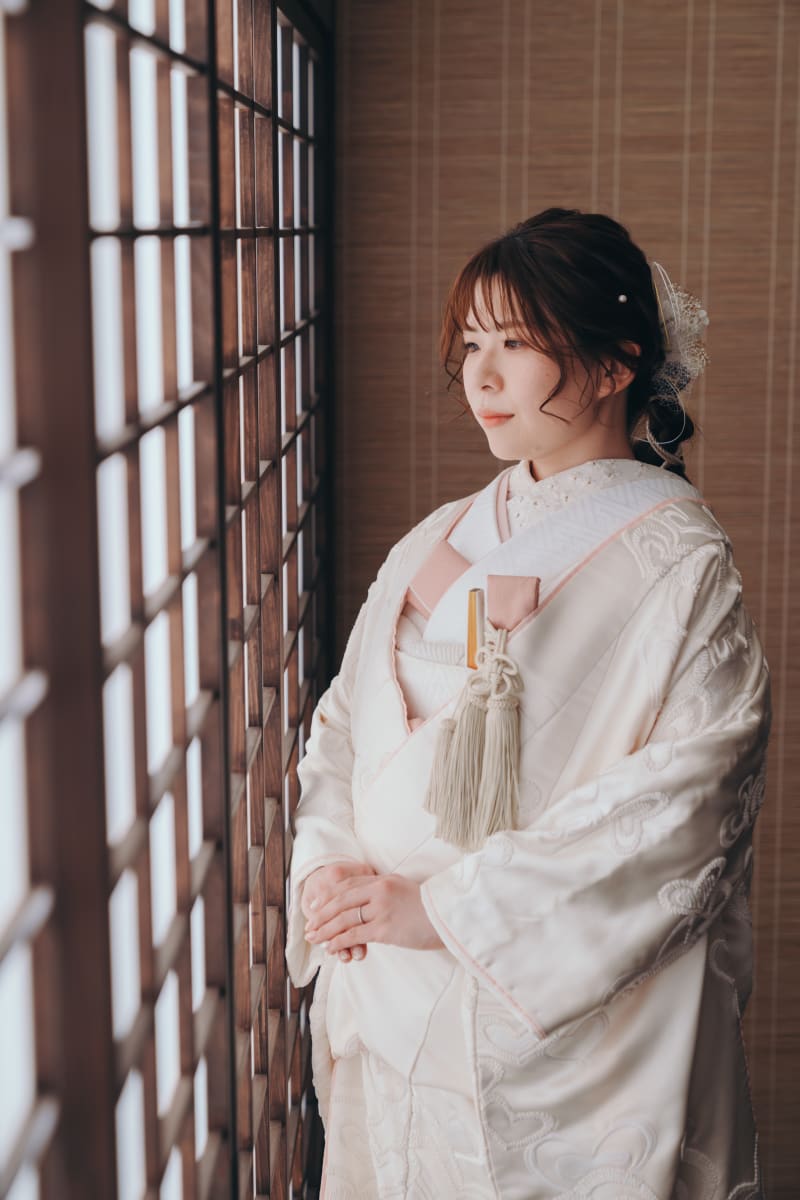 ご来店いただいた時に絶対コレ!と一目惚れしたハートの白無垢に新婦様の好きなピンクを詰め込んだコーディネートになりました♪