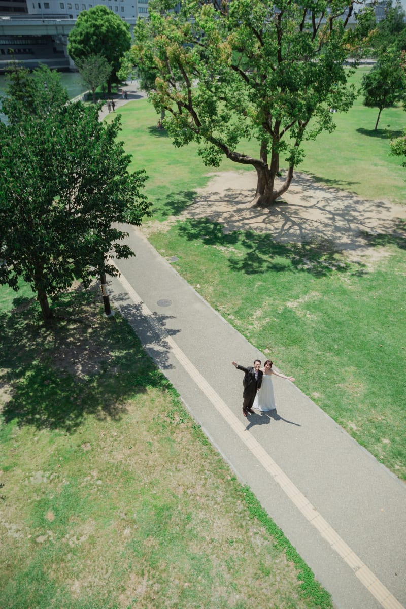 大仙古墳のある大仙公園での新緑ウェディングフォト、