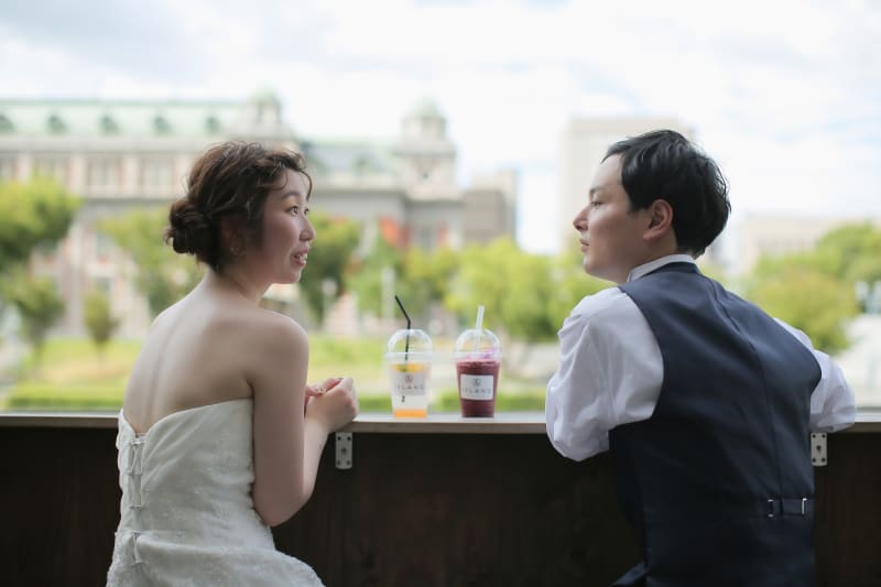 町中で撮るウェディングフォトもなかなかオシャレじゃないですか?