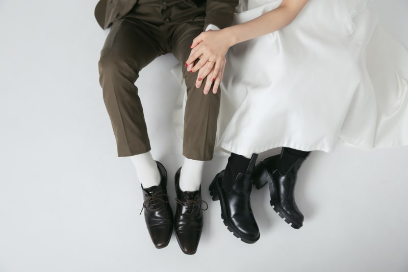 衣装もカジュアルにカーキのタキシードと短めのドレス×ブーツを♡