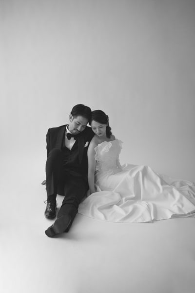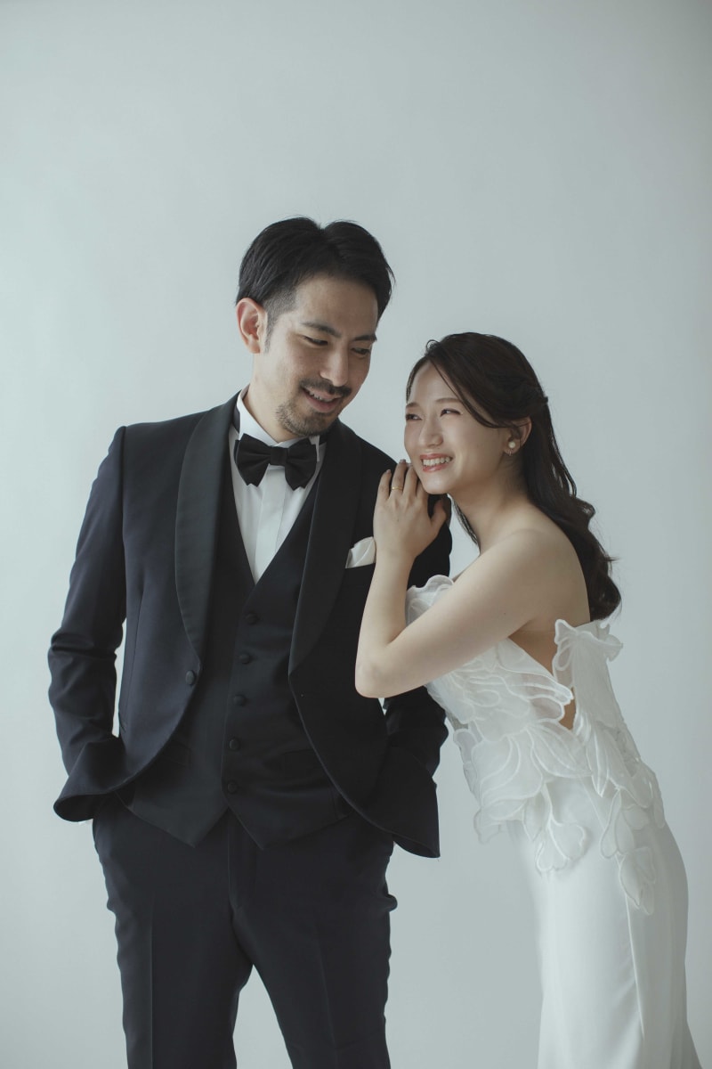 ▼スタジオplusシンプルな背景がお二人らしさを引き出します。