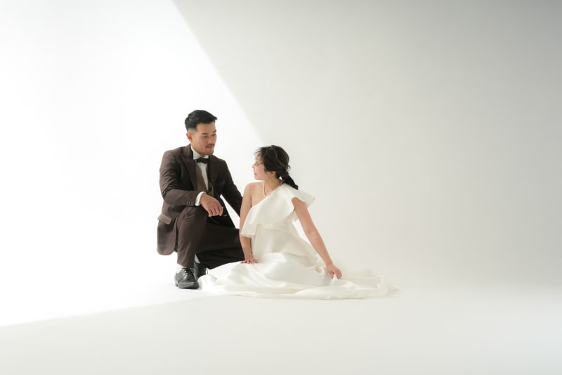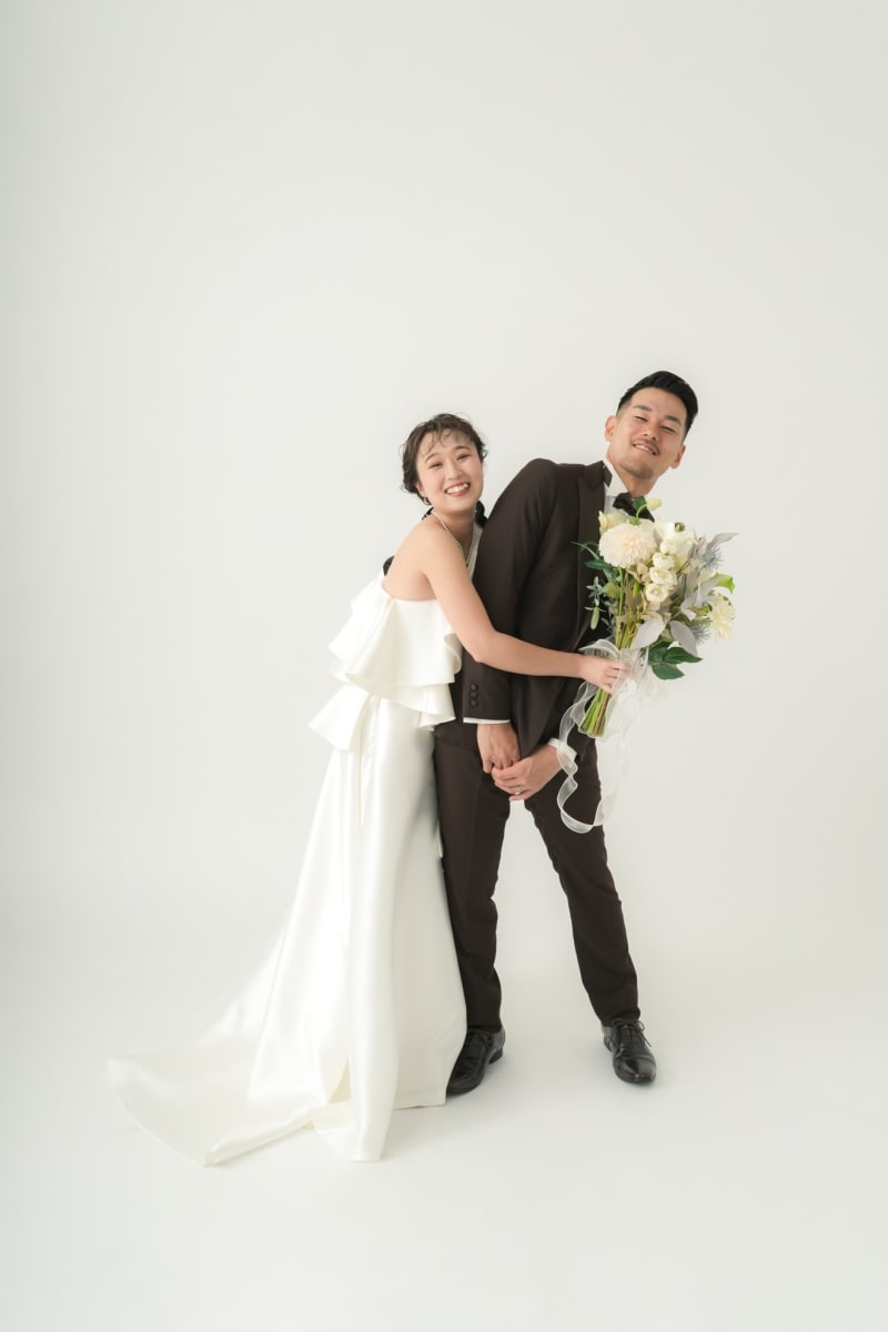 こちらのプランは白のバック紙での撮影で、他のスタジオと比べてシンプルなお写真が撮れるプランです!