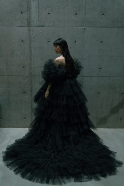 チュールのふんわりさを生かして、コーディネートやヘアメイクで可愛らしくも見せられます♪