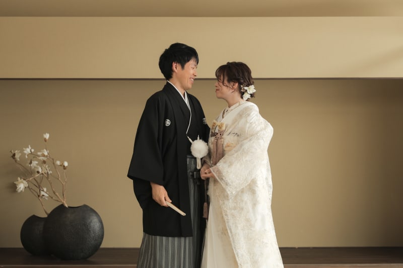 - 新婦様の白無垢は、真っ白のものやアイボリーのものがあり、小物もたくさんの色、柄があるので新婦様の好きなコーディネートにすることができます!