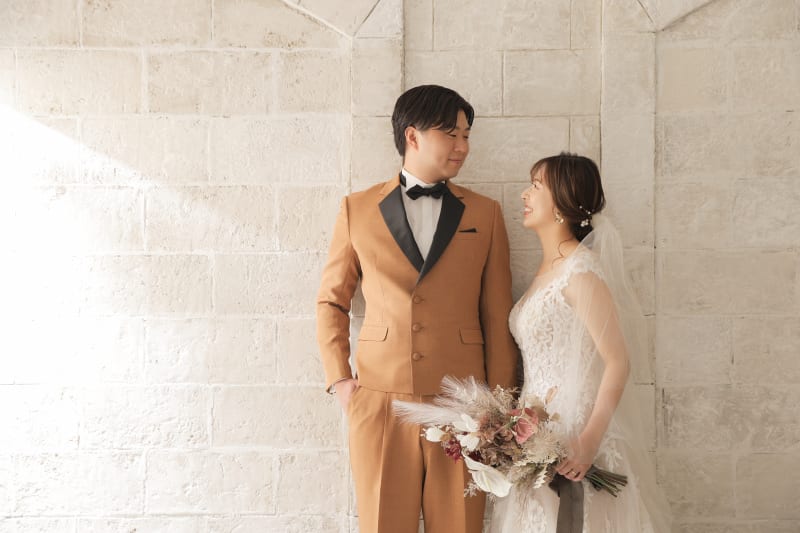 新郎様もブラウンのタキシードをかっこよく着こなされています♪