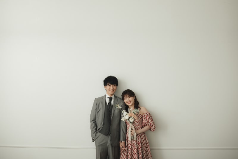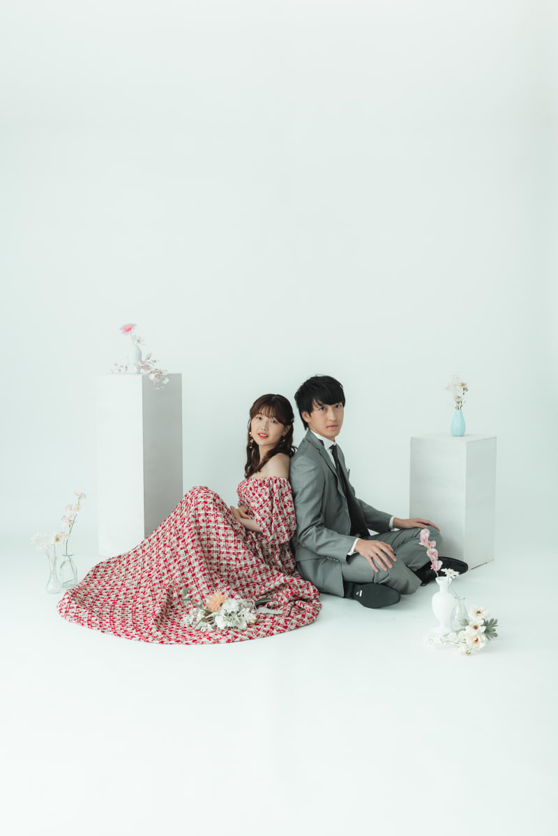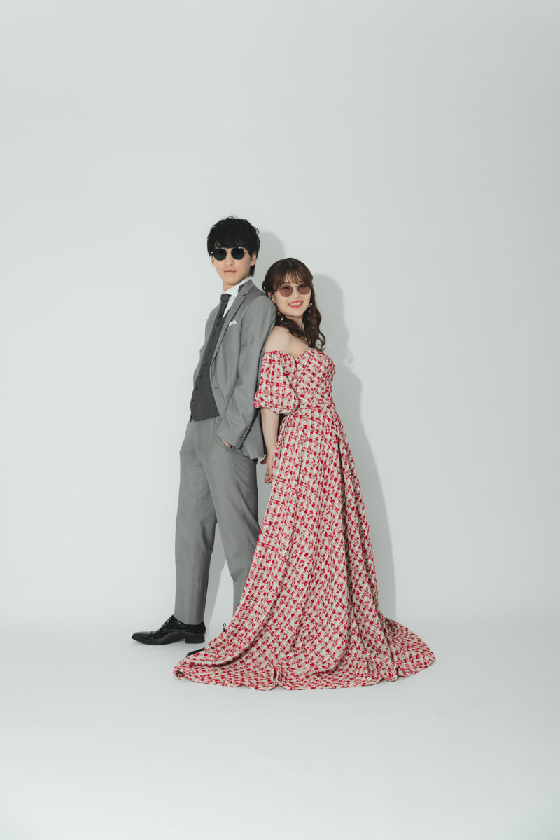 洋装スタジオは背景がシンプルな分、お二人の表情やお衣装が映え、色んなアレンジができます♪