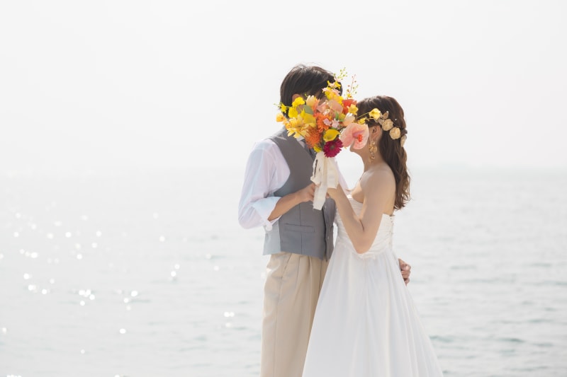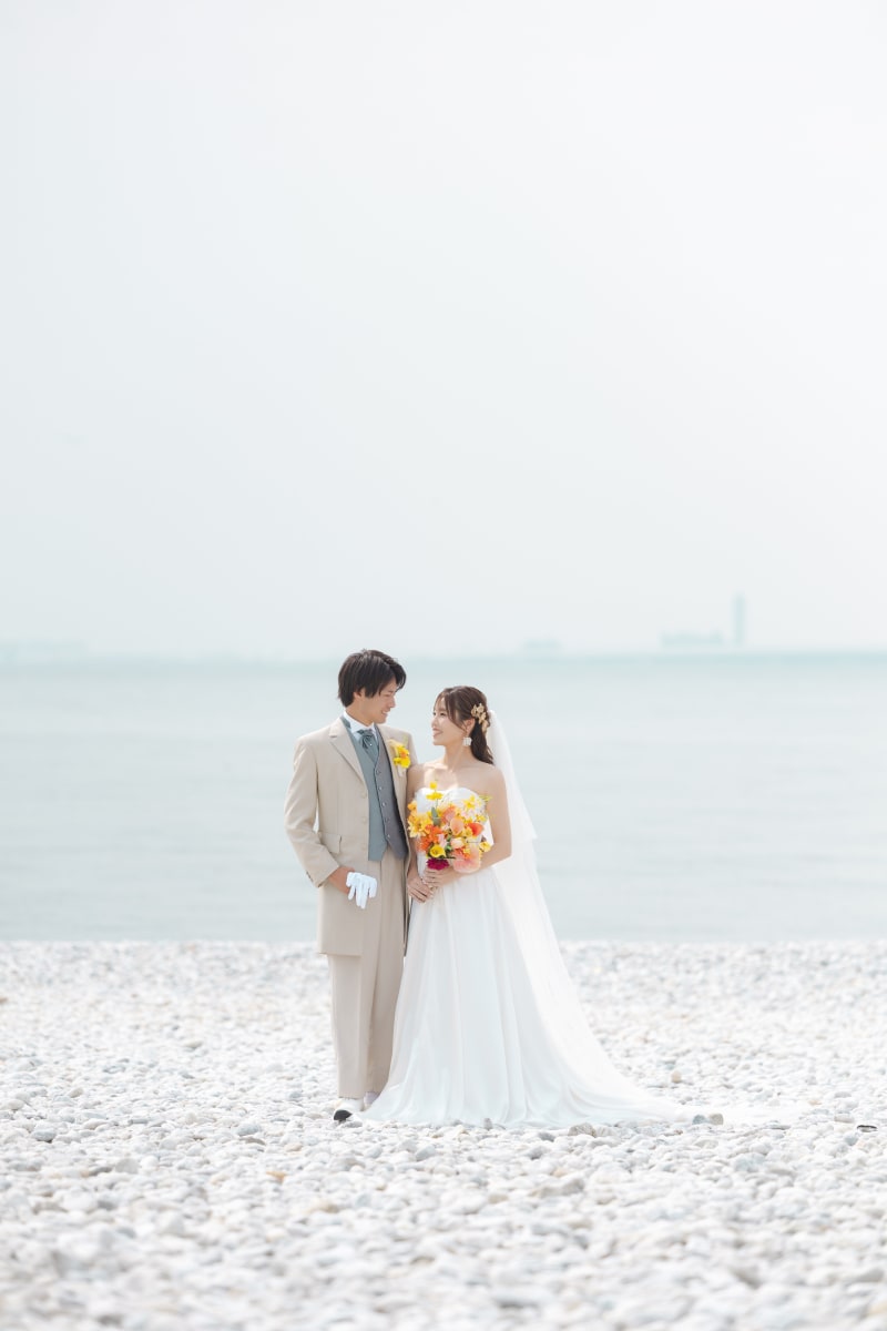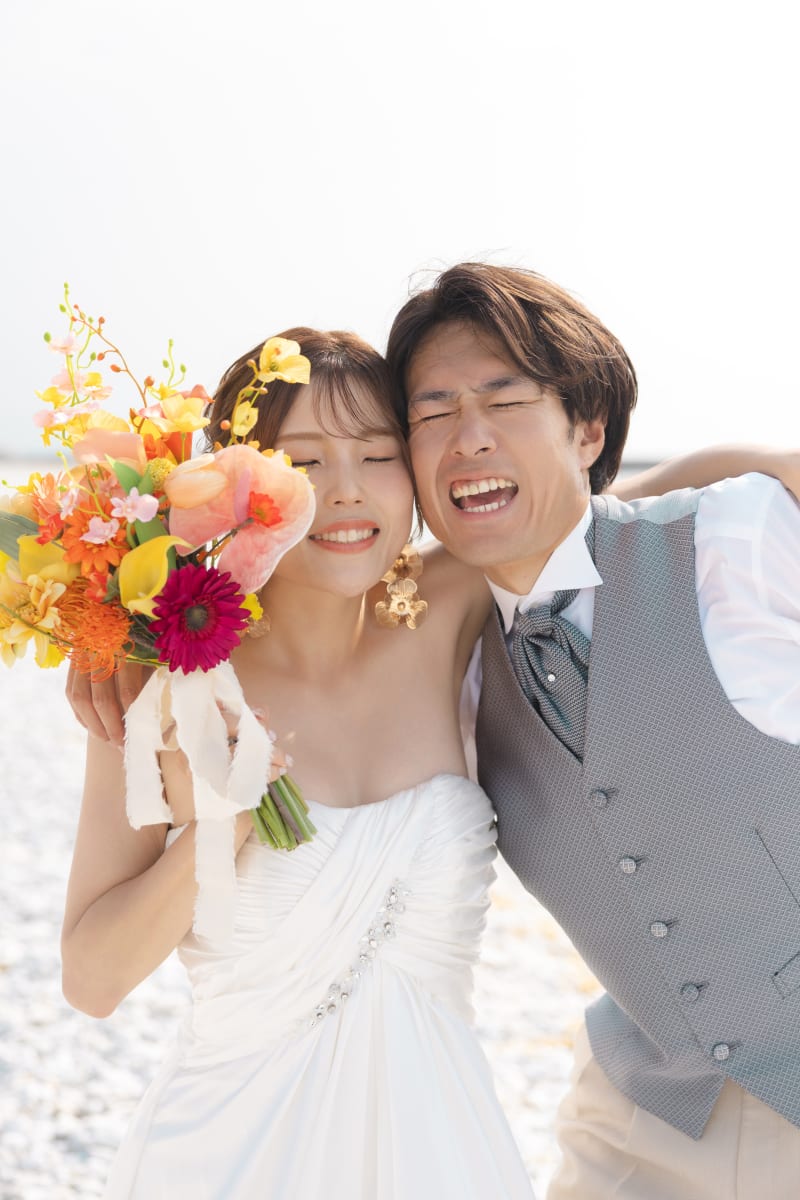 背景の海はもちろん見つめ合うお二人の笑顔がとても綺麗です‼︎