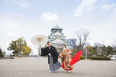 大阪のシンボル大阪城天守閣を背景に、歴史の重みを感じる力強い写真を残せます。洋装でレトロモダンな雰囲気を出すことも可能ですが、やはり凛とした和装が、雄大な城をバックに最も映えます。城郭内には緑も多く、様々な角度から撮影を楽しめます。