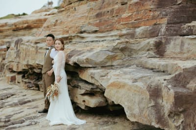大阪からは少し足を延ばしますが、まるで地層が何層にも重なったようなダイナミックな岩肌が魅力の絶景スポットです。広大で壮大な自然を背景に、個性と迫力ある写真を残したいカップルに強くおすすめ。洋装はもちろん、白無垢などの和装で自然の力を表現するのも素敵です。