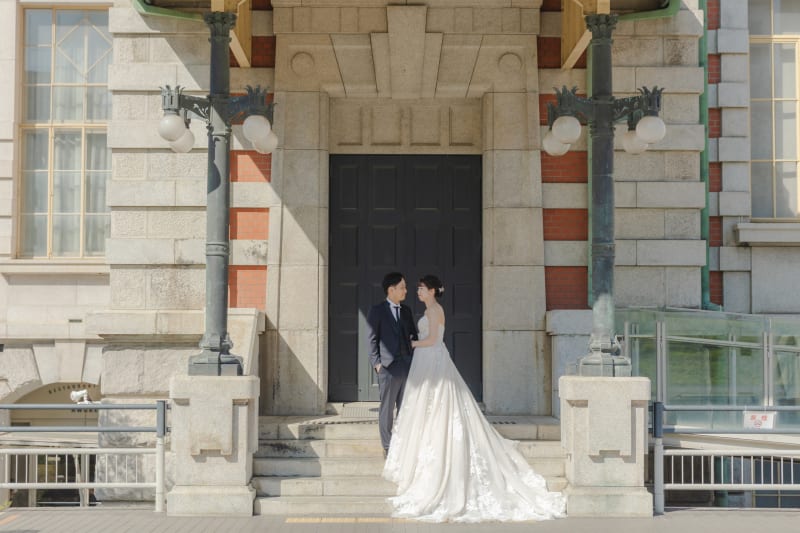 歴史感じる美しい外観を背景に、とても優雅なお写真です♡
