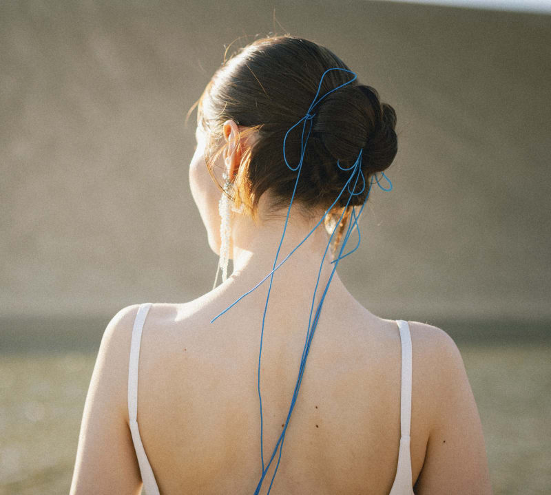 細めのブルーリボンを合わせることで、風に揺れるリボンが柔らかさをプラスしてくれます^^