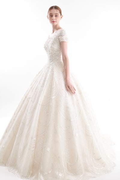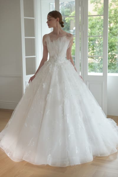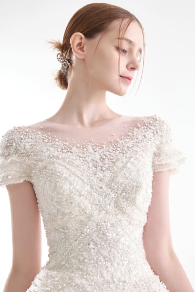 精巧なビーディングや繊細なレース刺繍が特徴です。