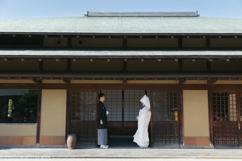 庭園の中にある茶室の前で撮影をさせていただいました◎