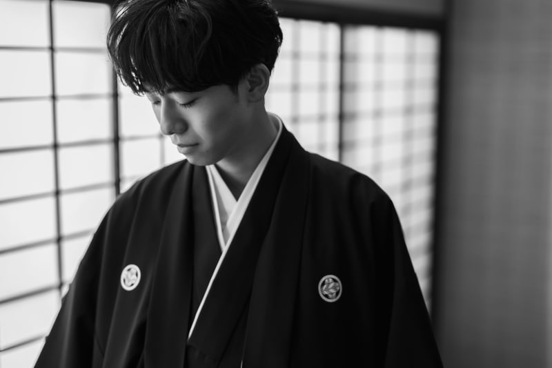 モノクロでクールに 新郎様のソロカットをお撮りします。