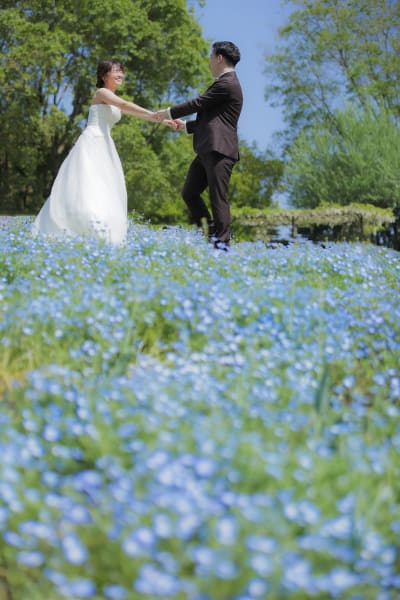 残したいカップルに強くおすすめ。洋装はもちろん、白無垢などの和装で自然の力を表