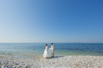 な異国情緒ある背景になり、明るく爽やかなウェディングフォトにぴったりです。