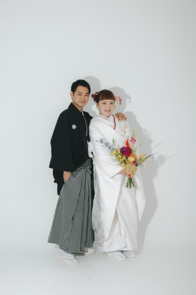 本日は、シンプルながらもお二人らしさがぎゅっと詰まった、素敵でユニークなスタジオ撮影の様子をご紹介します。