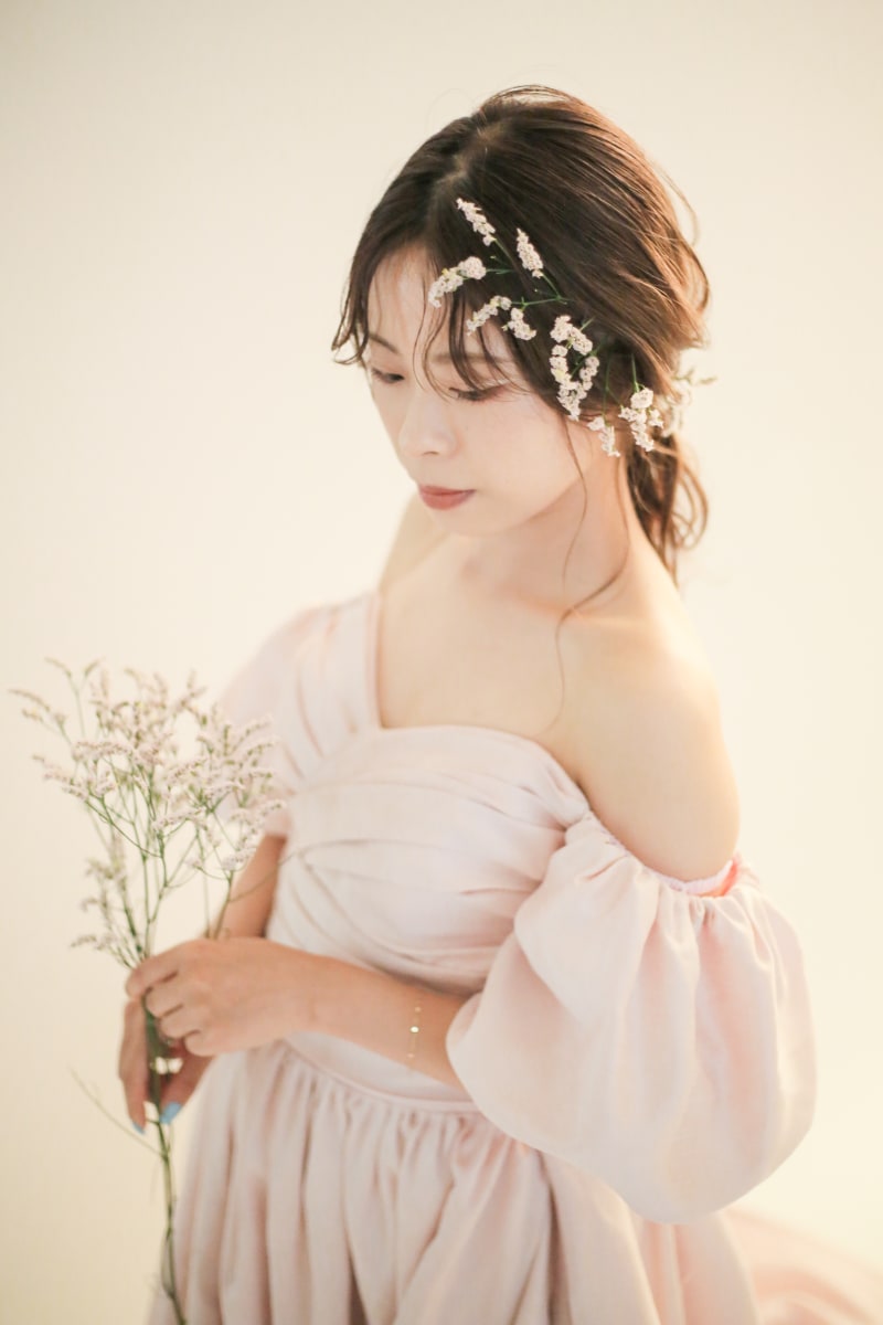 最近トレンドのお袖にボリュームがあるタイプで華やかな印象に🌷