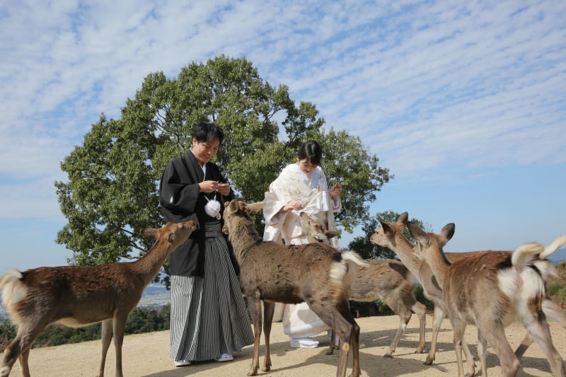 ウェデイングの撮影するなら、絶対奈良で鹿と撮る!!と決めてご来店頂きました。