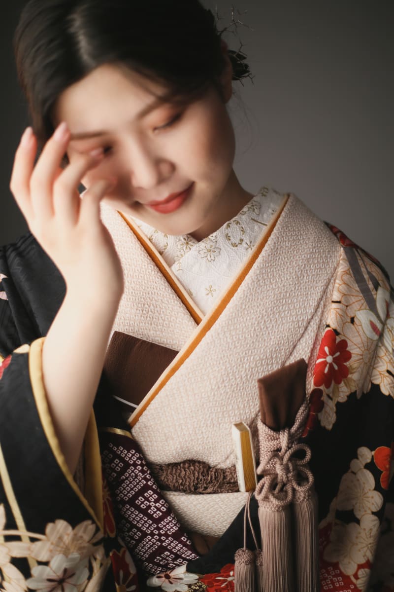 黒色の色打掛に、ベージュを組み合わせることで大人かわいい雰囲気に仕上がります✨