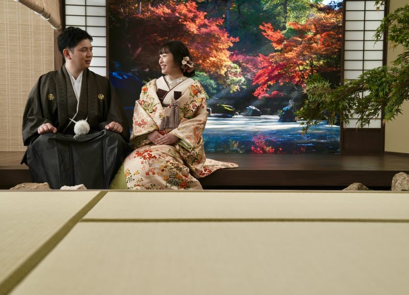 和庭園の次に雰囲気をガラッと変えてハウススタジオのシンプルな壁でも撮影しました♪♪