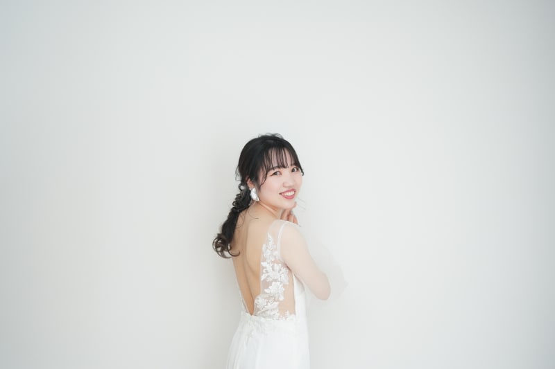 背中がV字にすっきり開いたシンプルなドレスにピッタリですね○。