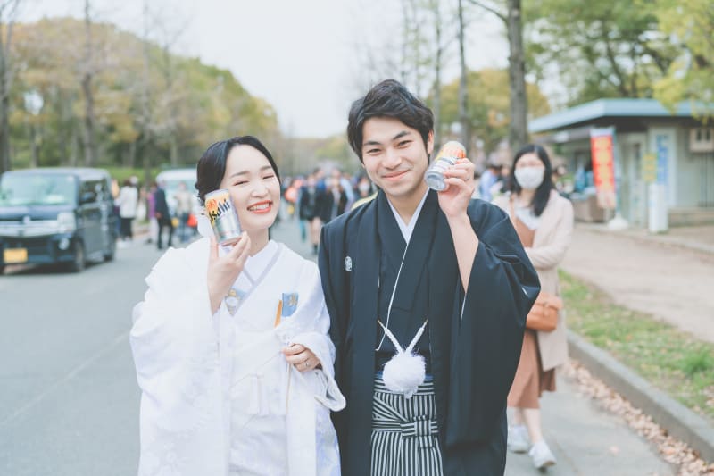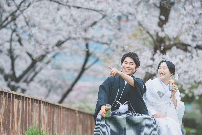 お花見気分での撮影は、お二人の自然な笑顔がより惹きたちますね!