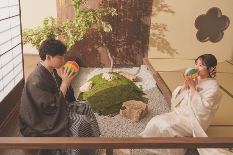 なかには、和装に合わせて紙風船を持ってこられるお客様も!