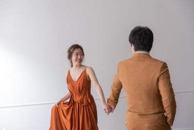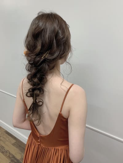 続いてはテラコッタ🍊のカラードレスに編みおろしのスタイル 🤗
