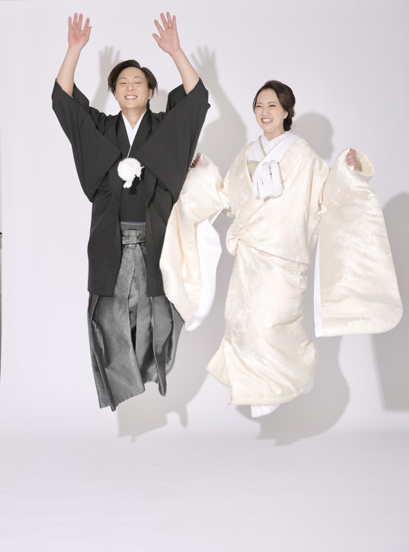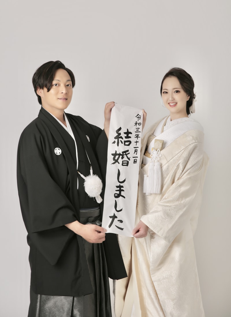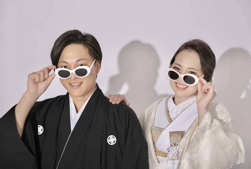 こちらのおふたりはシンプルな白背景の中で撮影いただいたのですが、おふたりらしい『アイテム』も