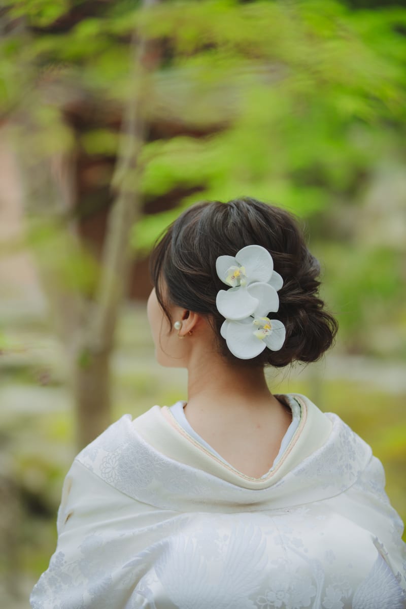 髪飾りは、白無垢にピッタリの胡蝶蘭にしました!