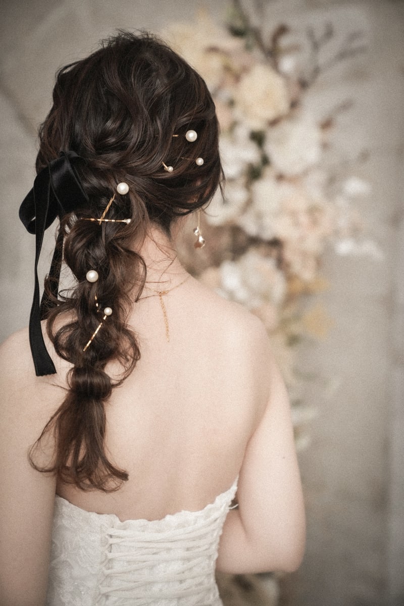 相性抜群のリボン×パールピン️˚✧₊⁎