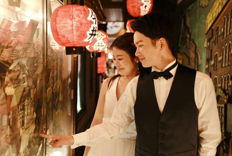 こちらでも様々なネオンの光がおふたりを照らしてくれています♪♪