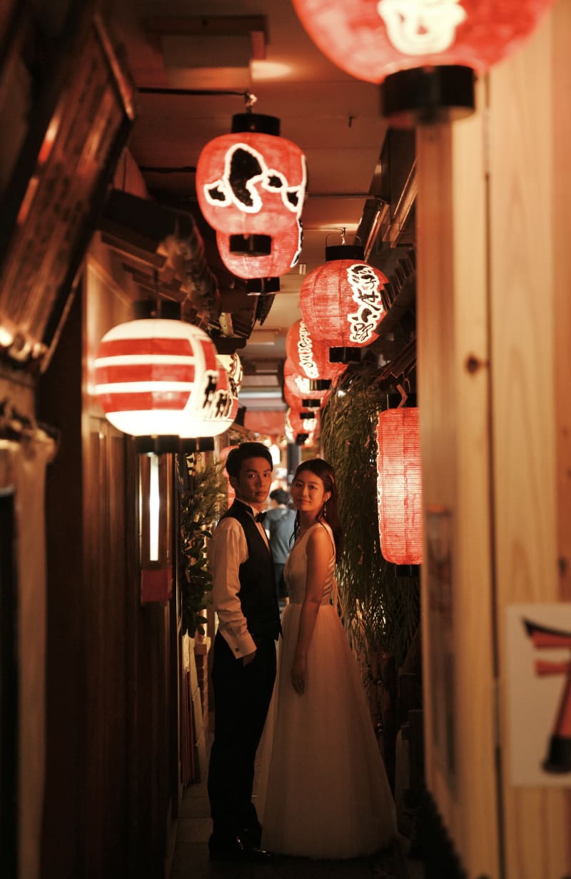 ネオンの街並みを抜けた後は少し雰囲気を変えて赤提灯が並ぶ細い路地でも撮影しました!!