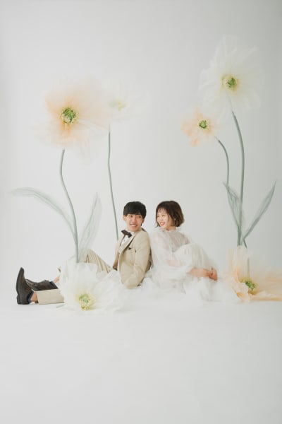 ▼スタジオplusシンプルな背景がお二人らしさを引き出します。