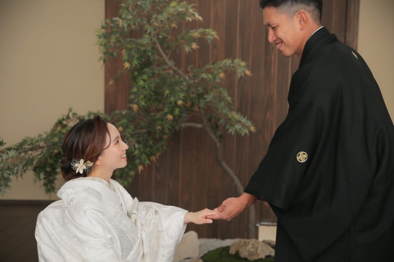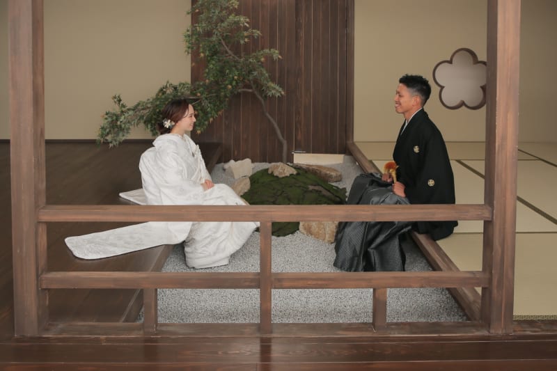 外での撮影は天候が心配、人に見られるのも恥ずかしい...でも和の雰囲気で撮影したい!という方にぴったりな屋内庭園スタジオでの撮影。